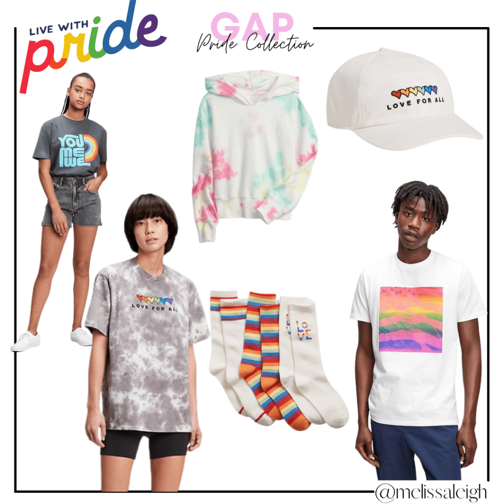 The Gap Collective Pride Teen 100% Cotton Shirt (You, Me We)//Kids Pride Tie Dye Hoodie//Collective Pride Baseball Hat//Collective Pride 100% Cotton Shirt (love for all)//Kids Pride Tube Socks (3-Pack)//Pride T-Shirt