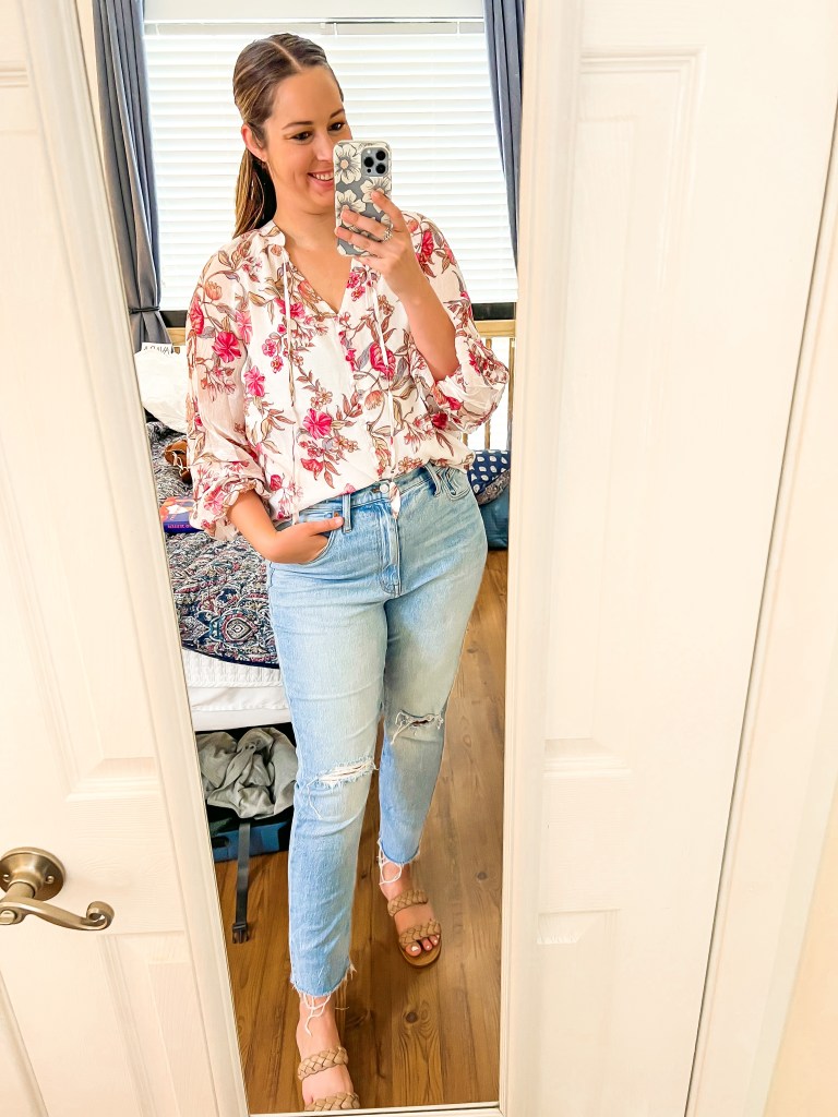 Blouse (on sale for $50 and code MELISSALEIGH15 will get you 15% off first order) // Jeans (currently 20% off with code LTK20) // Sandals