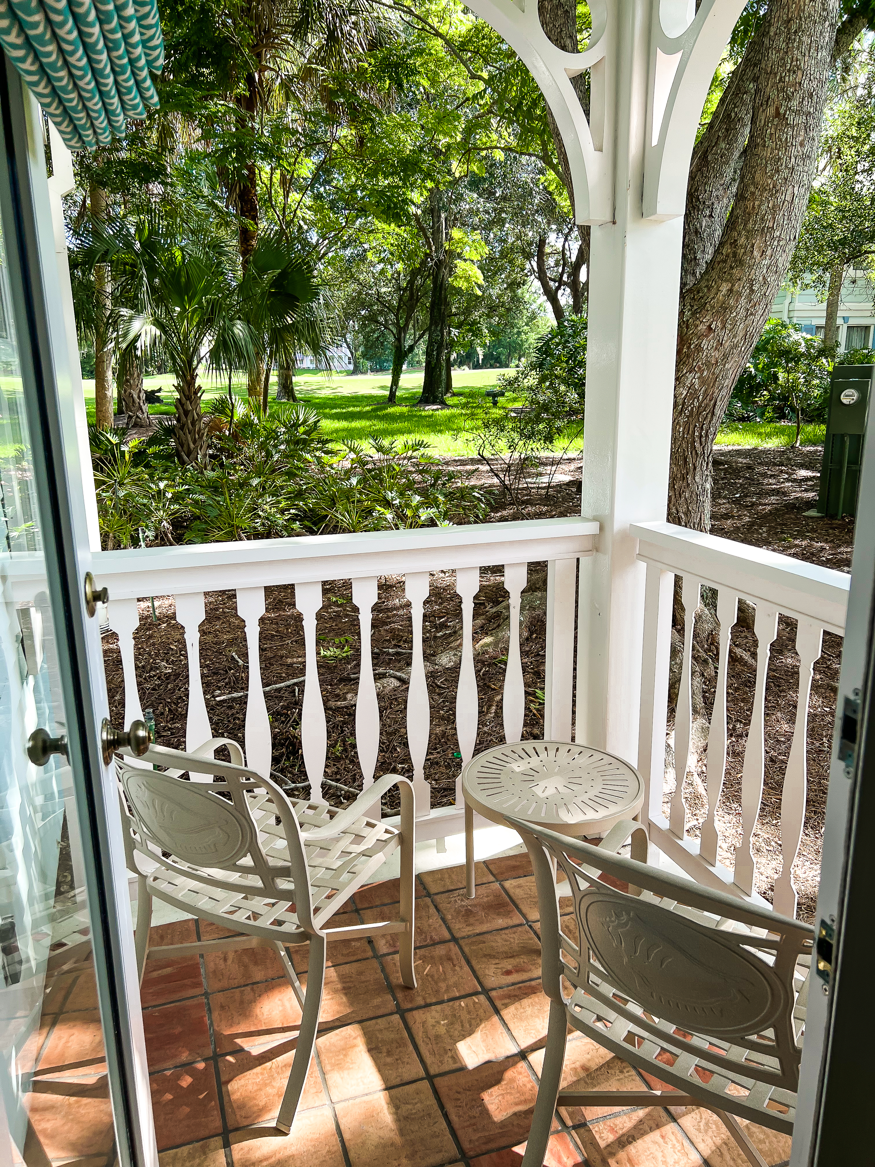 As soon as we stepped into Old Key West, it felt like we were at a lovely beach resort in the Keys. We were transported to another world! We were still close enough to the parks–we were close enough to Epcot to see the Fireworks from their nightly show from our patio. The Lake Buena Vista Golf course weaved through the resort property as well. We saw golfers from our patio and on the walk from the front of the resort to our suite. The entire resort was open and even had cute picnic tables set up by the lake where you could take a ferry over to Disney Springs.