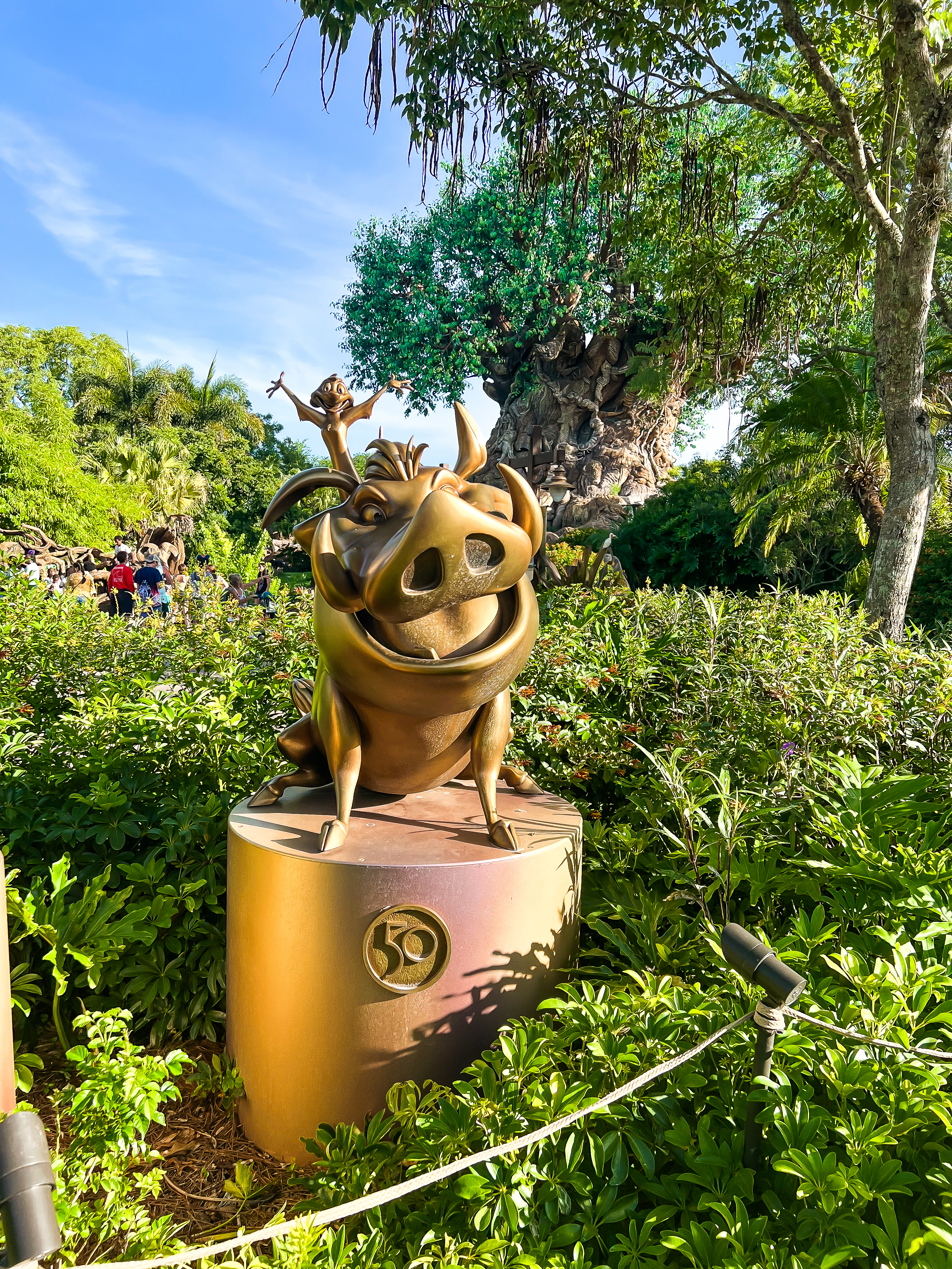 From the entrance, we went straight for the Tree of Life to get pictures in our cute animal ears out of the way before we got hot and sweaty from the heat. Right off the bat, we found the four 50th Anniversary statues for the park right by the tree in the Discovery Island area. This was kind of a let down for me, because I really enjoyed spending all day yesterday looking for the different statues scattered throughout the park. It had been like a scavenger hunt! At Animal Kingdom, we saw Bambi and Thumper from Bambi, Timon, Pumbaa, and Simba from The Lion King, and Marlin and Dory from Finding Nemo.