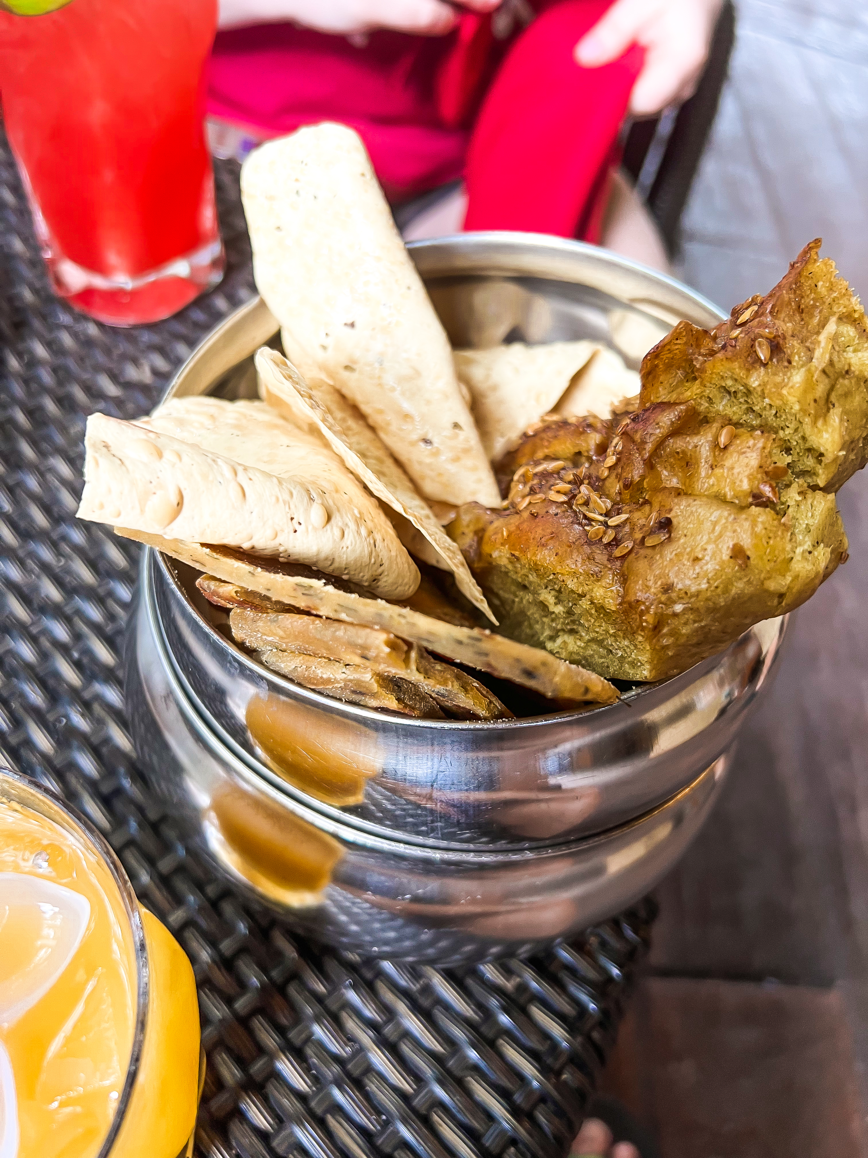 I ordered the Annapurna Zing basically only for the glowing lotus flower (which I still have). The drink is a Bombay Sapphire gin, passion fruit puree, mint, simple syrup and lime juice. I thought the drink was just okay and later learned that my main problem is that I don’t think I’m a fan of gin. For her drink Mary Ellen ordered a Jenn’s Tattoo, which had Ketel One vodka, watermelon, hibiscus, and lime juice. We also got a plate of their churros (which are gluten-free) and the Tiffin’s Bread Service. I loved the vanilla crème dip that came with the Churros. No trip to Disney is complete without getting churros and a Dole Whip, and we managed to get both in our first two days! We had such a nice time relaxing at Nomad Lounge. It was so peaceful and quiet. The lounge is definitely a hidden gem in Animal Kingdom.
