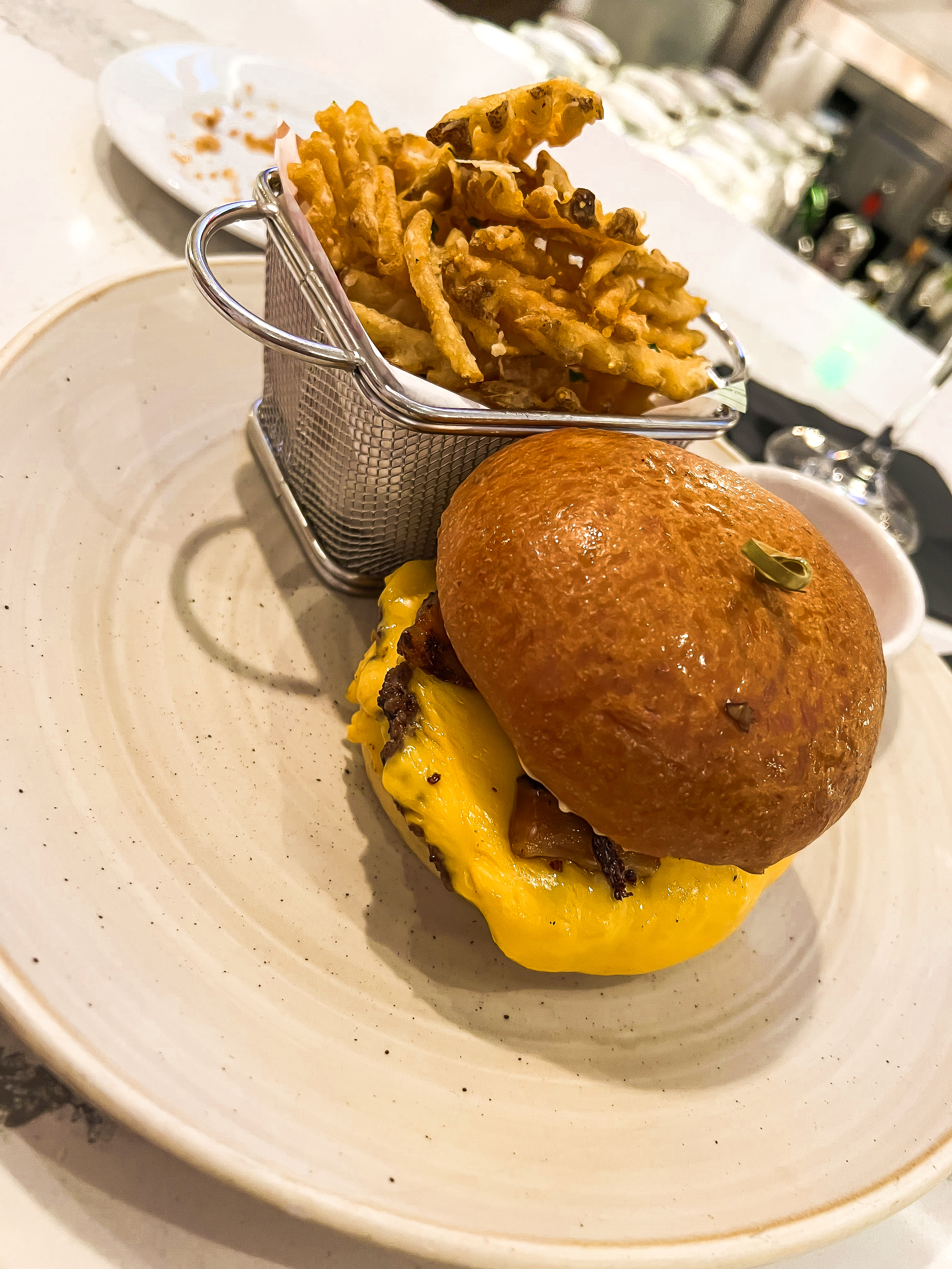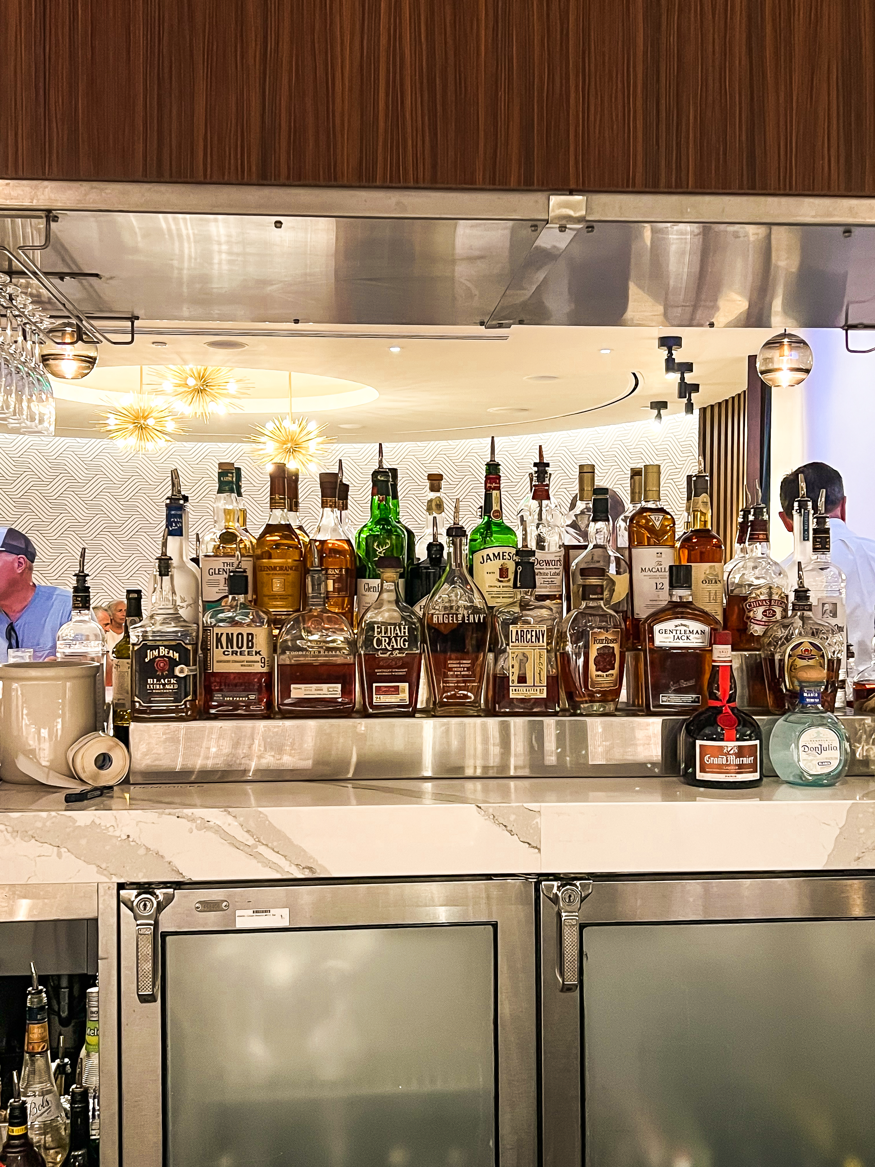 Instead of trying to figure out how to get over to the Contemporary Resort using buses and/or other modes of transportation, especially in the rain, Mary Ellen decided to get us a Lyft. It was a very quick drive and we had a great conversation with our driver. We made it over to the Contemporary in no time and went directly to Steakhouse 71. We were able to snag a couple of seats together at the bar instead of waiting to eat in the main dining room. We had a wonderful bartender serving us who gave us some great recommendations.