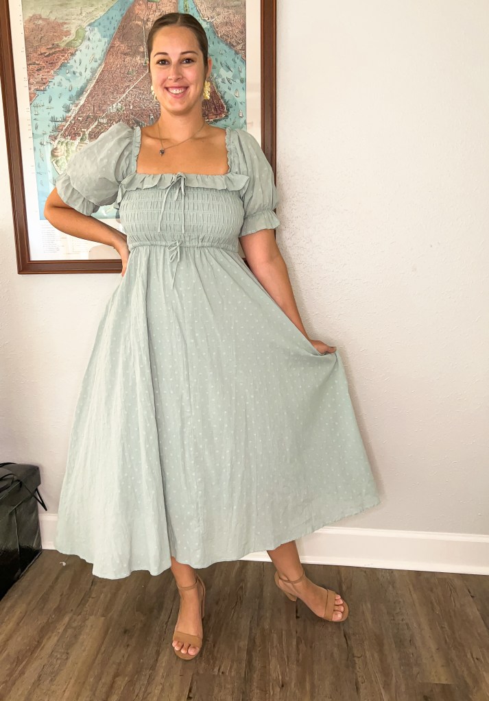Whenever I think of Tiana, I always think about her green gown at the end of the movie. This is also the outfit that she wears at the parks, so I wanted to put most of the focus on that color. It turned out perfect because my all time favorite Amazon dress just happens to also be a mint green color. Her accessories were a little bit harder to come up with, but I hope I did Tiana well in creating these fun outfits for her.