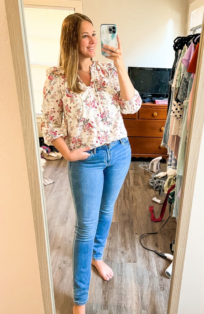 Top (old J Crew Factory, linking similar here and here – size Medium) // Jeans (size 10)