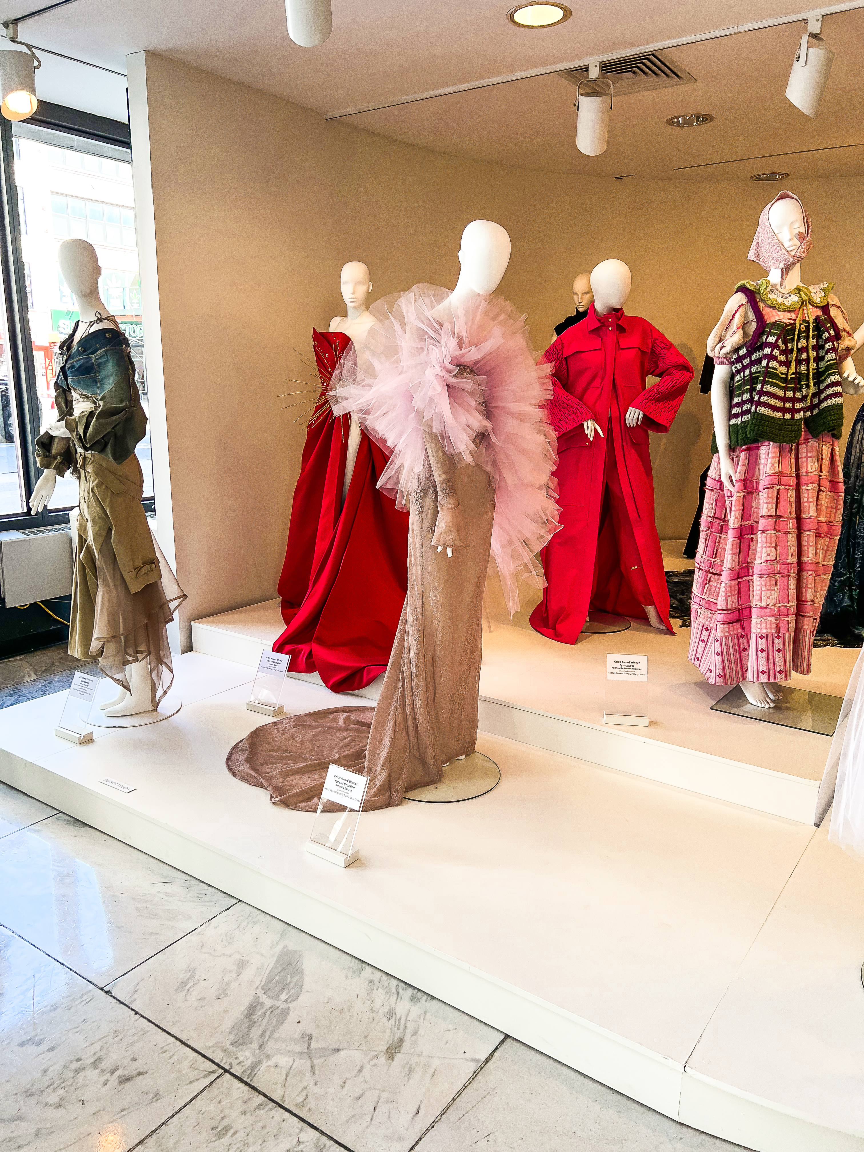Once we finished our time at The Summit, we realized it was almost 2PM and we hadn’t had lunch yet. There is a Chick-Fil-A across the street from One Vanderbilt, so we ran over there to grab lunch quickly before heading over to the Chelsea neighborhood to go see the exhibits at the Fashion Institute of Technology. The Fashion Institute of Technology is a free museum that displays all different types of art across all mediums. Because it was the end of the school year, we were able to see all the pieces of the graduating seniors, starting with a fantastic display of fashion. There were at least two dresses that the students had created that I would’ve killed to wear. They were stunning. I’m always blown away by peoples’ artistic talents!